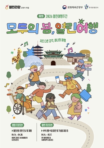 (서울=연합뉴스) 구정모 기자 = 문화체육관광부와 한국관광공사는 장애인의 날(4월 20일)을 맞아 오는 14일부터 30일까지 열린여행 주간 '모두의 봄, 열린 여행' 캠페인을 추진한다고 밝혔다.