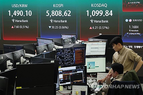 이날 코스피는 전장보다 50.25포인트(0.86%) 떨어진 5,808.62에 거래를 마감했다.