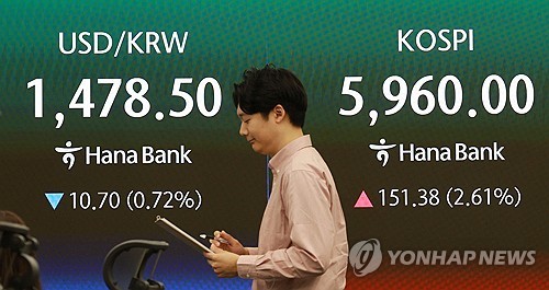 14일 오전 9시 14분 현재 서울 외환시장에서 미국 달러화 대비 원화 환율은 전 거래일 주간(낮) 거래 종가(오후 3시 30분 기준)보다 9.7원 내린 1,479.6원이다.