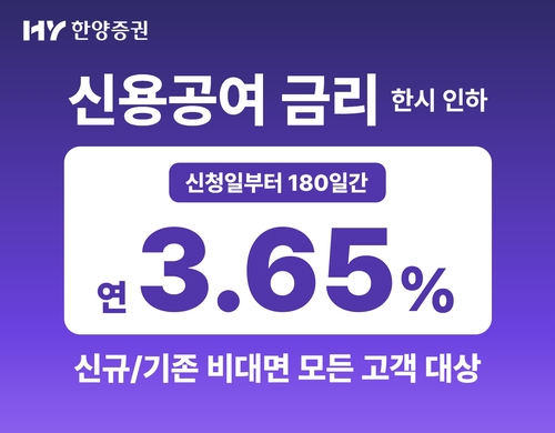 한양증권 관계자는 "고객의 이자 부담을 경감하고자 한시적 금리 인하를 결정했다"며 "고객의 금융비용 부담은 줄이고, 투자 편의성은 높일 수 있도록 리테일 서비스를 강화할 계획"이라고 말했다.