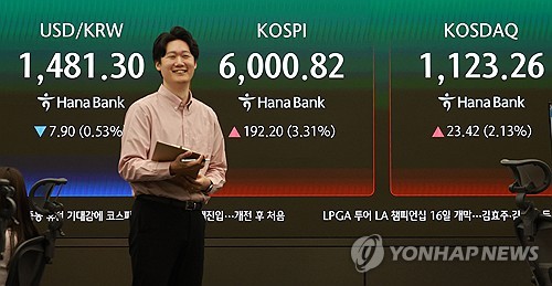 [속보] 코스피, 장중 6,000선 재돌파(끝)<저작권자(c) 연합뉴스, 무단 전재-재배포, AI 학습 및 활용 금지>