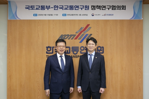 ▲ 한국교통연구원은 지난 13일 세종시 연구원 청사에서 국토교통부와 정책연구협의회를 열어 인공지능(AI)·빅데이터 교통혁신, 안전·지속 가능 환경 조성 등 분야의 협의 방안을 논의했다고 14일 밝혔다. 협의회에는 홍지선 국토부 2차관과 김영찬 교통연구원 원장 등이 참석했다. (세종=연합뉴스) (끝)