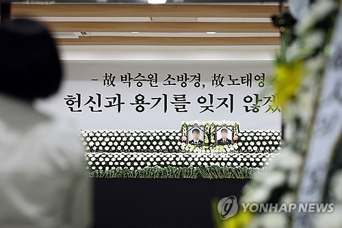 (서울=연합뉴스) 조성흠 기자 = 에쓰오일은 화재 진압 중 순직한 완도소방서 고(故) 박승원 소방경과 고(故) 노태영 소방교의 유가족에게 각각 3천만원의 위로금을 전달한다고 14일 밝혔다.
