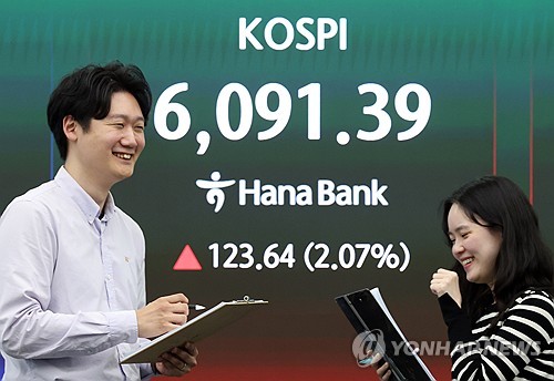 이날 코스피는 전장보다 123.64포인트(2.07%) 오른 6,091.39에 거래를 마감했다.