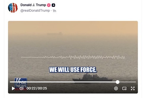 별다른 설명 없이 영상만 올렸는데, 대이란 해상봉쇄를 집행하겠다는 의지를 피력하며 이란에 협상 타결을 압박하려는 의도로 보인다.