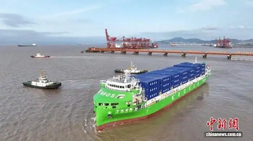 16일 관영 중국신문망에 따르면 1만t급 전기 컨테이너선 '닝위안뎬쿤호'가 전날 저장성 닝보 저우산항에서 자싱 자푸항으로 첫 항해에 나서며 상업 운항을 시작했다.