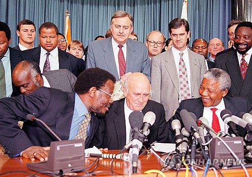 당시 그의 협상 상대가 넬슨 만델라가 이끄는 아프리카민족회의(ANC)의 수석 협상대표였던 라마포사 현 대통령이다.
