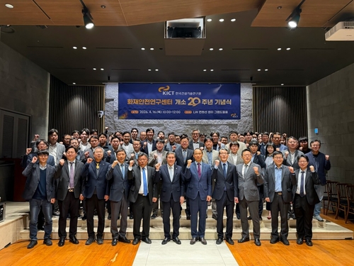 ▲ 한국건설기술연구원은 화재안전연구센터(화재안전연구본부)가 지난 16일 서울 중구 중림동 LW컨벤션에서 개소 20주년 기념식을 개최했다고 17일 밝혔다. 기념식에서는 지난 20년간의 화재 안전 기술 발전사를 돌아보는 기념 공간을 마련하고, 미래 30년을 향한 '초지능형 화재 안전' 비전을 제시했다. 화재안전연구본부는 '함께한 화재 안전 20년, 함께할 미래안전 100년'을 슬로건으로 제시하고, 2050년까지 달성할 본부의 역할과 책임을 공개했다. (서울=연합뉴스)