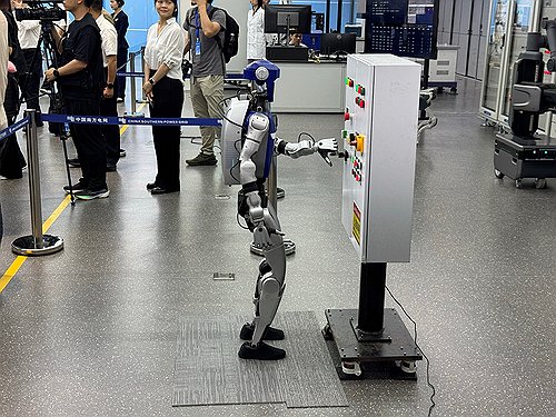 CSG가 개발한 휴머노이드 로봇 '즈싱저 1호'는 흰색 가운을 입은 실험실 관계자의 음성 지시를 듣고 성큼성큼 기계 설비로 다가간 뒤 버튼을 눌렀다.