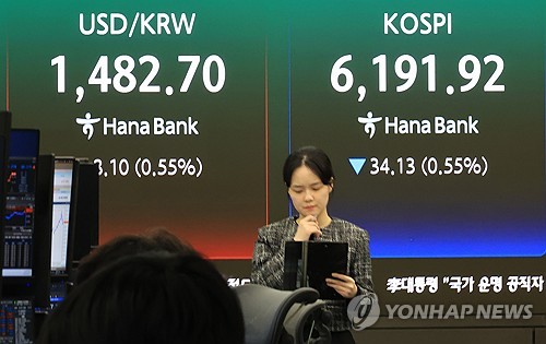 이날 코스피는 전장보다 34.13포인트(0.55%) 내린 6,191.92로 거래를 마감했다.