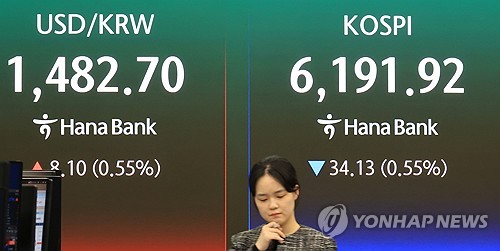 이날 코스피는 전장보다 34.13포인트(0.55%) 내린 6,191.92로 거래를 마감했다. 외국인은 약 1조9천836억원어치를 순매도했다.