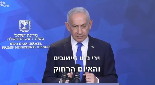 네타냐후 총리는 레바논 휴전 발효 첫날인 17일(현지시간) 영상 성명에서 레바논과의 10일간 휴전 결정을 언급하면서 "우리는 한 손에 무기를 들고, 다른 한 손은 평화를 위해 뻗고 있다"고 말했다.