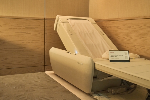 웰니스 룸에 설치된 세라젬의 제품들이 척추 길이와 굴곡을 분석해 체형에 맞춘 마사지를 제공하고 온열 기능으로 근육 이완을 돕는다.