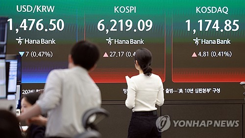 (서울=연합뉴스) 이민영 기자 = 코스피가 20일 6,210대에서 상승 마감했다.
