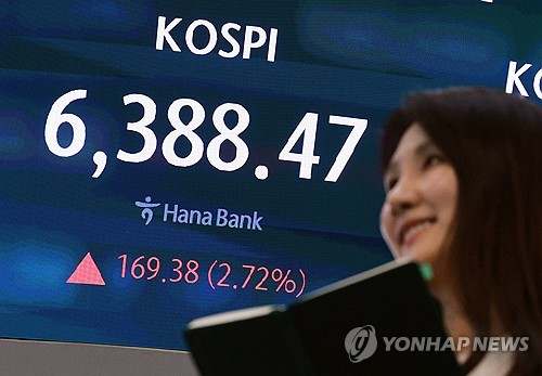 이날 코스피는 전장보다 169.38포인트(2.72%) 오른 6,388.47에 거래를 마치며 지난 2월 26일 기록한 종가 기준 사상 최고점(6,307.27)을 약 2개월 만에 경신했다.