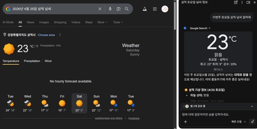 그랬더니 미국·이란 협상 관련 뉴스와 유튜브 영상, 삼척 날씨, 대회 정보 웹페이지 등을 동시에 띄워 원하던 정보가 나열됐다.