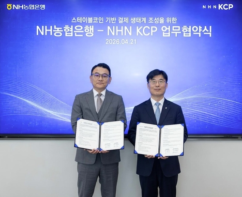 (서울=연합뉴스) 한지훈 기자 = NH농협은행은 NHN KCP와 스테이블코인 기반 결제 생태계 조성을 위한 전략적 업무협약을 체결했다고 22일 밝혔다.