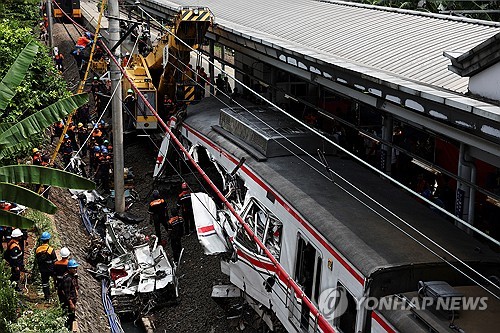28일 인도네시아 철도공사(KAI)는 전날 오후 8시 50분께 자카르타에서 약 25㎞ 떨어진 서자바주 베카시 지역 철로에서 사고가 발생해 지금까지 14명이 숨지고 84명이 부상해 병원에서 치료를 받고 있다고 밝혔다.