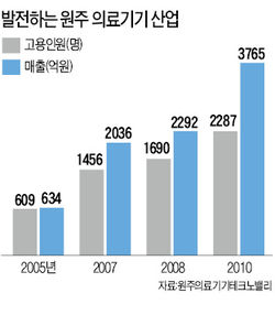 강원도 원주시의 의료기기 기업은 2005년 60개에서 2010년 107개로 늘어났다. 이 기간 이들 업체의 매출은 634억원에서 3765억원으로 5배 넘게 성장했다. 원주 의료기기 산업의 발전은 연세대 원주캠퍼스와 원주시, 지역 기업들이 힘을 모아 지역 산업을 발전시킨 산·학·관 협력의 모범 사례로 꼽힌다. 연세대는 지역 산업을 발전시킨 성과를 바탕으로 교육과학기술부의 산학협력선도대학(LINC) 육성 사업에 선정돼 향후 5년간 매년 30억원씩을 지원받는다.