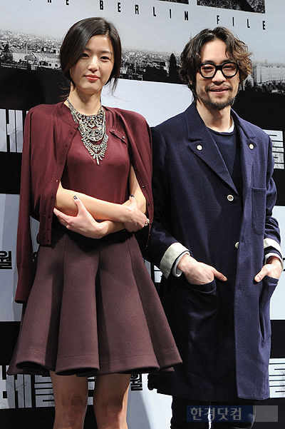 배우 전지현, 류승범이 7일 오전 서울 신사동 CGV압구정에서 열린 영화 '베를린'(감독 류승완, 제작 ㈜외유내강) 제작보고회에 참석해 포토타임을 갖고 있다.