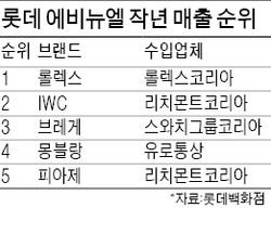 에비뉴엘은 고가 시계뿐 아니라 예물시계로 인기 있는 매스티지 브랜드도 전면에 내세우기로 했다. 지난해 에비뉴엘에서 월평균 5억원대 매출을 냈던 IWC 매장을 그대로 가져가면서, 롯데백화점 잠실점에서 월평균 4억원대 매출을 내는 오메가를 롯데가 직접 사들여 판매키로 한 것이다. 롯데백화점이 직접 수입업체로부터 시계를 사서 판매하는 브랜드는 롤렉스와 오메가뿐이다.20~30대 남성들 사이에서 입소문을 타고 있는 파네라이의 단독 부티크를 부쉐론 자리에 내주기로 한 것도 같은 맥락이다. 500만~700만원대부터 시작하는 파네라이 시계는 랜드로버 차와 같은 남성적인 이미지가 특징이다. 태그호이어보다는 비싸고 브라이틀링과 비슷한 수준이다.