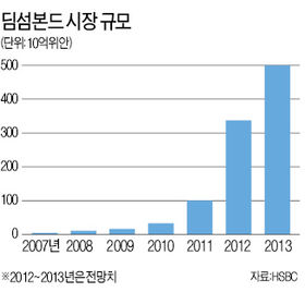 하지만 지난해 딤섬본드 수요는 주춤했다. 2011년 5.1%를 기록했던 위안화 절상률은 작년 1분기 0.2%에 그쳤고, 원자바오 중국 총리도 인위적인 절상 가능성을 낮게 시사하면서 투자자들이 빠져나갔다.