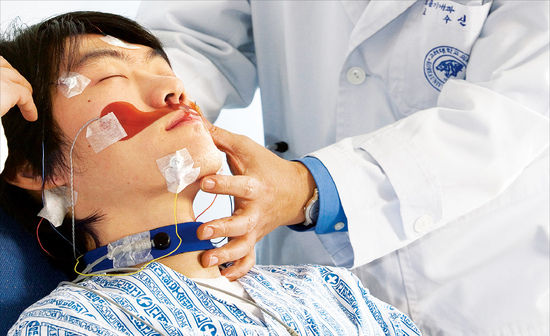 국민건강보험공단에 따르면 코골이(수면성무호흡) 환자는 2006년 1만3174명에서 2008년 1만6622명, 2010년 1만9792명으로 가파르게 늘고 있다. 지난해엔 2만3000여명 정도로 추산된다. 이 가운데 남성 환자가 70% 정도로 압도적이고, 특히 40·50대 중년 남성이 가장 많다.