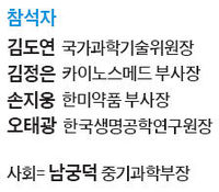 한국경제신문이 5일 한국생명공학연구원, 국가과학기술위원회와 공동으로 주최한 ‘FTA 시대, 글로벌 신약으로 해법 찾는다’ 좌담회에 참석한 전문가들은 국내 제약회사들이 좁은 내수시장의 한계에도 비교적 선전해 왔지만 지속 성장하기 위해서는 글로벌 시장에서 통할 신약 개발에 집중해야 한다는 데 입을 모았다. 기업들의 연구·개발(R&D) 투자를 활성화하기 위해서는 신약 개발 업체가 확실한 성공을 거둘 수 있도록 약가 평가 제도 등을 정비해야 한다는 지적도 나왔다. 이번 좌담회에는 김도연 국가과학기술위원장, 김정은 카이노스메드 부사장, 손지웅 한미약품 부사장, 오태광 한국생명공학연구원장 등이 참석했고 남궁 덕 한국경제 중기과학부장이 사회를 맡았다.