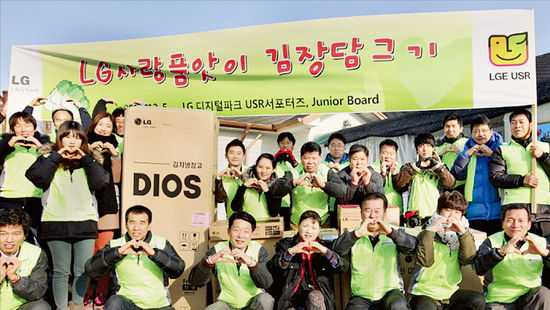 계열사별로 사회공헌 활동에도 적극 나선다. LG디스플레이는 작년 11월 경기 파주공장에서 사랑의 김장 담그기 봉사활동을 벌였다. 한상범 사장을 비롯해 300여명의 임직원들이 참여, 복지시설과 저소득층에 줄 김치를 담궜다. 7000포기의 배추김치를 파주시내 40개 복지시설과 350여 소외계층 집으로 배달했다. LG디스플레이는 매년 전국 사업장 인근에 있는 저소득층 가정에 연탄과 내복도 제공하고 있다.