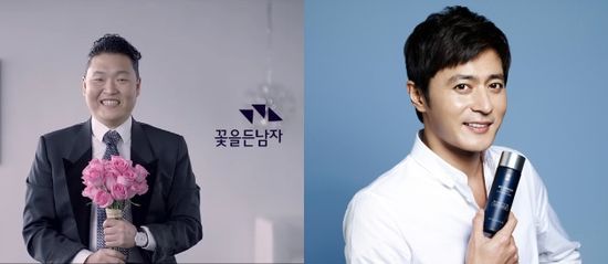 '꽃미남'은 아니지만 가수 싸이 역시 월드스타답게 화장품 모델로 파격 기용됐다. 소망화장품은 최근 싸이를 전면에 내세운 '싸이 에너지 팩토리 맨즈 시리즈'를 선보였다. 기초 제품과 선크림, 피부 보정용 밤(balm) 등으로 구성돼 있다.