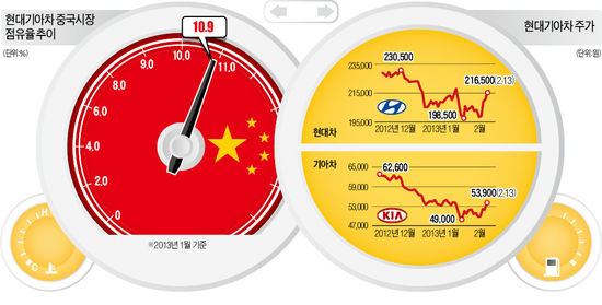 엔화 약세 위협을 다시 봐야 한다는 주장도 제기된다. 고태봉 하이투자증권 연구원은 “과거 현대차는 원화 강세에도 불구하고 주가가 오르고 생산량이 늘어나는 패턴을 보였다”며 “일본차 업체나 국내 업체나 모두 해외생산을 늘렸고 중국판매 비중을 키운 만큼 환율요인이 단순하게 적용되지 않는다”고 지적했다.