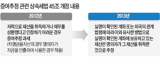 올해 1월1일부터 상속·증여세법에 ‘차명계좌 증여 추정’이라는 규정이 만들어지면서 시중은행 PB센터에는 금융자산가들의 문의가 쏟아지고 있다. 과세당국이 상속·증여세법에 차명계좌도 증여대상 범위에 넣겠다고 진작에 밝혔지만 금융소득종합과세 강화라는 큰 이슈에 묻혀 아직 제대로 인식하지 못한 경우가 많았기 때문이다.