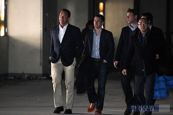 할리우드 스타 아놀드 슈왈제네거가 19일 오후 경기도 화성에 위치한 김지운 감독의 단편영화 `하이드&시크`(Hide & Seek) 촬영장을 방문해 발걸음을 옮기고 있다.