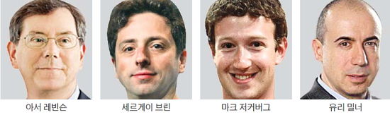 2013년 2월20일(현지시간). 미국 샌프란시스코에 있는 UC샌프란시스코에 21세기판 노벨들이 모였다. 이번엔 정보기술(IT) 분야의 거물들이다. 애플 이사회 의장인 아서 레빈슨, 구글 공동창업자 세르게이 브린, 페이스북 공동창업자 마크 저커버그, 러시아 최대 포털 메일닷알유(mail.ru) 창업자 유리 밀너 등이다.