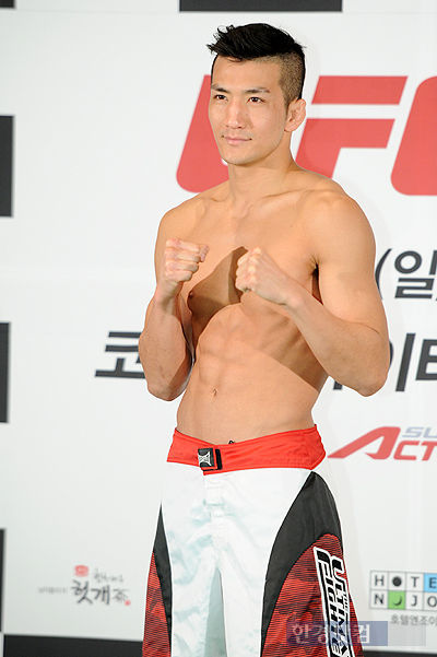 UFC 데뷔전을 치르는 강경호가 22일 오후 서울 상암동 CJ E&M센터에서 열린 'UFC in JAPAN' 출정식에 참석해 포토타임을 갖고 있다.