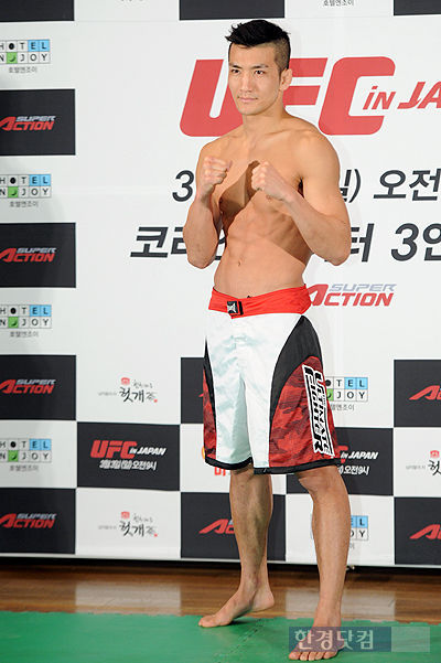 UFC 데뷔전을 치르는 강경호가 22일 오후 서울 상암동 CJ E&M센터에서 열린 'UFC in JAPAN' 출정식에 참석해 포토타임을 갖고 있다.