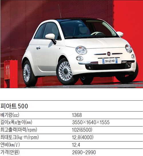 급커브길에서도 주행감이 안정적이다. 날렵한 코너링은 아니더라도 차체가 붕 뜨거나 밀리는 느낌 없이 역동적인 주행이 가능했다. 스포츠 모드 기능이 있어 속도를 낼 때 좋다. 고속도로에서 스포츠 모드로 변환했더니 엔진음도 줄고 가속하기에 좋았다. 크기가 작아 좁은 골목길에 안심하고 들어가도 되고 주차하기도 쉬웠다. 여성들에겐 안성맞춤이다. 가격은 기본 모델인 친퀘첸토 팝이 2690만원, 친퀘첸토 라운지 모델이 2990만원이다. 천으로 된 지붕이 열리는 친퀘첸토C 모델은 3300만원.