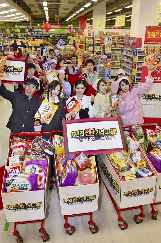 <P class=바탕글>홈플러스는 28일 서울 문래동 영등포점에서 창립 14주년을 기념해 “10년전 전단가격 그대로드립니다.”'라는 물가안정 퍼레이드를 진행했다. 3월 1일부터 한 달간 전국 133개 매장 및 홈플러스 익스프레스, 인터넷쇼핑몰에서 동시에 진행한다.
