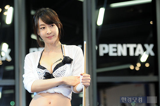 펜탁스 런칭 기념 '펜탁스 19금 포토 페스티발'이 6일 오후 서울 여의도동 서울 마리나 요트 클럽에서 열렸다. 경기에 참가한 레이싱모델 이가나가 공을 바라보고 있다.