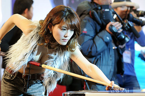 펜탁스 런칭 기념 '펜탁스 19금 포토 페스티발'이 6일 오후 서울 여의도동 서울 마리나 요트 클럽에서 열렸다. 경기에 참가한 레이싱모델 이미정이 공을 바라보고 있다.