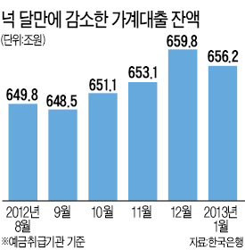 1월 가계대출이 크게 줄어든 것은 부동산 세금 감면 혜택이 작년 말로 끝났기 때문이다. 이재기 한국은행 금융통계팀 차장은 “지난해 말 주택 취득세 감면 혜택이 끝나면서 거래가 급감하고 관련 주택담보대출도 크게 줄었다”고 설명했다. 작년 12월 주택담보대출은 5조2000억원 급증했지만 올 1월에는 전달보다 2조4000억원 감소했다. 직장인들이 연말 성과급을 받아 여윳돈이 생기면서 마이너스 통장을 정리한 것도 가계대출이 줄어든 또 다른 요인이다. 마이너스 통장이 대부분을 차지하는 기타 대출은 전달보다 1조2000억원 감소했다.