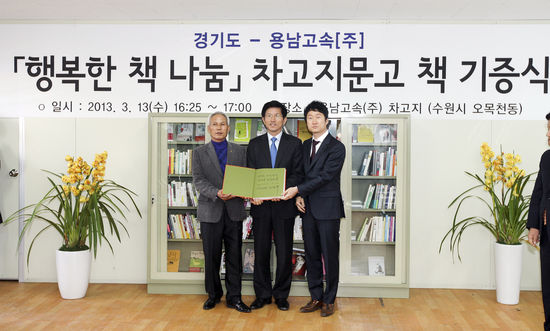 김문수 경기도지사와 이우정 행복한 도서관재단 상임이사, 김연풍 전국택시노동조합 경기본부장은 13일 수원시 고등동 소재 택시기사 쉼터와 수원시 오목천동 소재 용남고속 차고지를 각각 방문, ‘행복한 책 나눔 운동’을 통해 수집된 도서 각 300권을 기증했다.