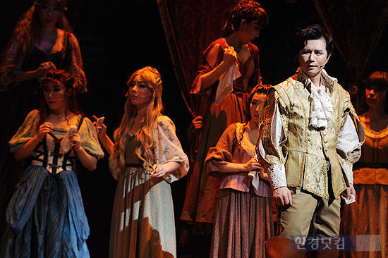 배우 김민종이 14일 오후 서울 흥인동 충무아트홀 대극장에서 열린 뮤지컬 '삼총사' 프레스콜에 참석해 공연을 선보이고 있다.
