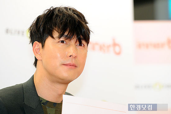 CJ제일제당 이너비 모델인 배우 정우성이 17일 오전 서울 명동 올리브영 명동 본점 라이프 스타일 체험센터에서 열린 팬사인회에 참석해 사인을 들어보이고 있다.