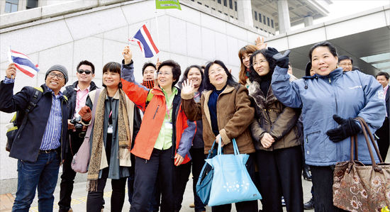 태국 관광객들이 18일 서울 여의도 국회의사당 앞에서 방문 기념촬영을 하고 있다. 국회사무처는 “최근 들어 국회를 찾는 외국인 관광객이 부쩍 늘었다”고 밝혔다.