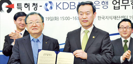 특허청(청장 김영민)과 한국산업은행(행장 강만수)은 19일 업무협약식을 갖고 ‘KDB 테크노뱅킹 IP담보대출’을 본격적으로 시행키로 했다. 특허 보유 중소·중견기업들은 이달 말부터 산업은행 기술금융부와 각 영업점에서 특허담보대출을 신청할 수 있다. 지원 기업의 특허는 산업은행 예비평가와 특허청이 비용을 지원하는 IP 가치평가를 거쳐 최종 대출이 결정된다. 금리는 부동산 담보대출 수준이다.