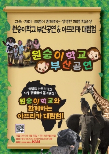 부산경남대표방송 KNN이 주최하는 원숭이학교 부산공연과 아프리카 대탐험 행사가 3월 23일부터 8월 25일까지 벡스코 제2전시장 3층에서 펼쳐진다.