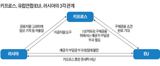 러시아에서 지원받는 돈이 늘어날수록 키프로스가 자체 조달해야 하는 자금은 줄어든다. 드미트리 메드베데프 러시아 총리는 20일 미칼리스 사리스 키프로스 재무장관을 만난 자리에서 “러시아는 사태 해결을 위한 여러 방안을 고심하고 있다”고 말했다.