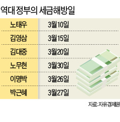 역대 정부의 마지막 연도를 기준으로 세금 해방일을 비교하면 김영삼 정부(1997년)는 3월15일, 김대중 정부(2002년)는 3월20일이었다. 노무현 정부 때(2007년)는 3월30일, 이명박 정부(2012년)에서는 3월26일이었다.