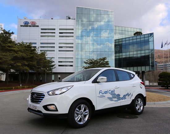 현대차는 이날 세계 최초로 양산되는 '투싼ix 수소연료전지차'에 대한 설명회와 시연회를 가졌다. 투싼ix 수소연료전지차는 2010년 3월 제네바모터쇼에서 첫 선을 보인 모델. 현대차는 1998년 수소연료전지차 개발에 착수한 이후 16년 만에 소형 스포츠유틸리티차량(SUV) 투싼ix를 모델로 한 첫 양산형 수소연료전지차를 내놨다.